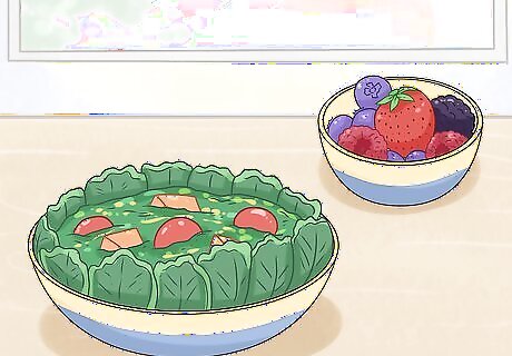 Eat a healthy diet with fruits and vegetables. Eating healthy gives you more energy and helps even out your mood swings. Aim to fill your plate up halfway with fruits and veggies at every meal, then add lean proteins and whole grains. Try to skip processed foods and sugary snacks as much as possible. Try eating 5-6 small meals throughout the day to help keep your blood sugar levels even, which will steady your moods.