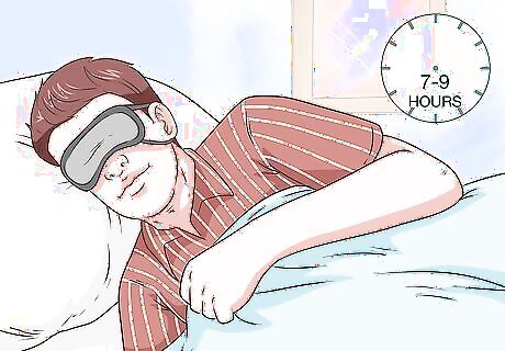 Get 7-9 hours of good sleep each night for good emotional health. If you're tired, you're more likely to let your emotions overwhelm you, causing you to be swept up in them. By getting enough rest, you'll be giving yourself the mental resources to deal with emotions as they happen. Make sure you go to bed on time by setting an alarm 1 hour before you need to sleep. Turn off the electronics and start winding down for bed. Create a good sleep environment by blocking out as much light as possible with dark curtains. Turn off all the noise you can and drown out what you can't with a white noise machine. Keep your bedroom cool and think about making your pets sleep in another part of the house so they don't disturb your rest.