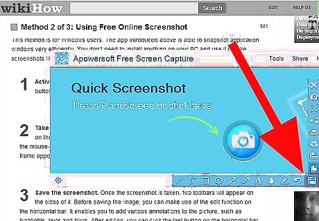 Save the screenshot. Once the screenshot is taken, two toolbars will appear on the sides of it. Before saving the image, you can make use of the edit function on the horizontal bar. It enables you to add various annotations to the picture, such as highlights, texts and blurs. After editing, you can click the last button on the horizontal bar to save the graph to your local disk.