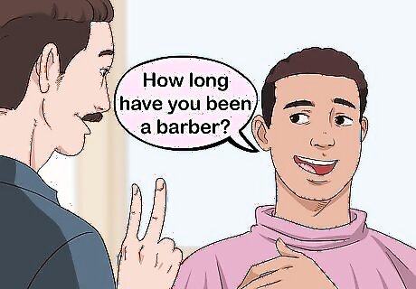 Inquire about their work experience. Start off by asking your barber how long they’ve been cutting hair. This is a good ice breaker and might lead to other conversation subjects. In the end, you’ll learn more about your barber both as a professional and as a person. Ask the barber how long they’ve worked at that location. Find out how long they’ve been cutting hair. Say something like “So, how long have you been a barber?”