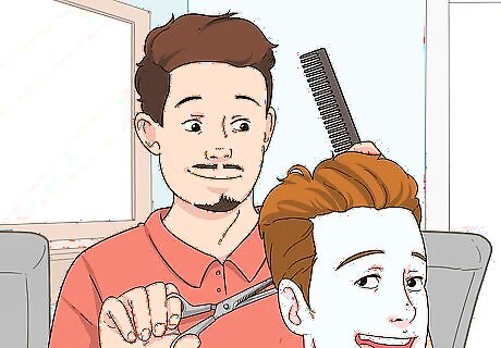 Decide how you want your hair actually cut. While the idea of getting a haircut may seem simple, the way a barber cuts your actual hair may vary. As a result, you need to decide between several distinct ways of cutting your hair. They include: Thinning your hair out. If you have very thick hair, you might want to ask your barber to use thinning shears to cut some of your hair’s volume. Cutting your hair with a razor blade. Cutting your hair with a razor will create a more natural look. Your hair may lay flatter, too. Using a choppy approach. If your barber does this, they’ll cut your hair at many different lengths and at a 45-degree angle. This will create a more dynamic appearance than if your hair was cut equally. Layering your hair. If you opt for this, your barber will create different layers in your hair. This may create the appearance that you have more hair volume than you really do.