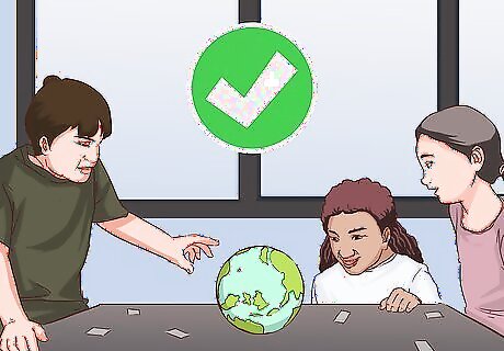 Use geography board games. There are many geography board games on the market, made for a range of age levels and educational levels. Some board games focus on U.S. states or famous landmarks around the world. Some games have participants quiz each other on world capitals and landmasses. Look for geography board games online or at your local toy store. Go for geography board games made for your students’ age range, such as games for age 3 and up for pre-schoolers or games for 12 to 14 year olds for kids in middle school. You could even challenge advanced students to create their own geography board games. Groups of students could then play each other’s games.