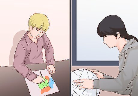 Create a paper globe or a large map. Have students create their own world globes out of paper mache. Give them strips of newspaper, water with glue, and a balloon. They can then use colored paints to draw land, water, borders, and land masses on the globe. For a less messy alternative, you can have students create a large map on white paper using colored paper or markers.