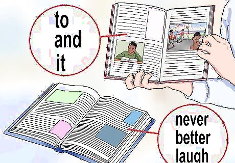 Teach target sight words. Sight words are the most commonly occurring words in children’s books by reading level. Words like “to,” “and,” and “it” occur in preschool level books, and move up to words like “never,” “better,” and “laugh” in 3rd grade level books. What is known as Dolch word list outlines the 220 most commonly occurring words in children’s literature. Teach sight words with pictures. Many learners think in pictures, and whether we realize it or not, we often visualize what we are learning to help solidify the information in our memories. Practice listening to, saying, and repeating the sight words. Have students listen to sight words while you show them the words on flash cards. Have them repeat the words after you. Review current sight words in books, music, and games. Exposing students to sight words as many times as possible and in many contexts will help them to really learn them.