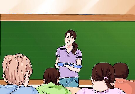 Make lessons for different learning styles. Children (as well as adults) learn in many different ways: there are visual learners (people who learn best seeing things written down or with pictures and diagrams), auditory learners (people who learn best by hearing people talk), and kinesthetic learners (people who learn best through movement and by doing a task). There are also people who have strengths in spatial concepts, music, and interpersonal skills. Find out where your students’ strengths lie by having them take a learning style inventory in the beginning of the year. Try to use as many possible models of teaching to cover all bases. Use visuals, lectures, activities, music, group projects, etc. to accommodate the various learning styles of your students.