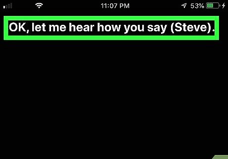 Say your first name. Siri will say "Let me hear how you say the name." The name Siri wants you to say will be spelled out in parenthesis at the top of the screen.