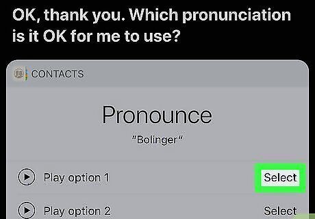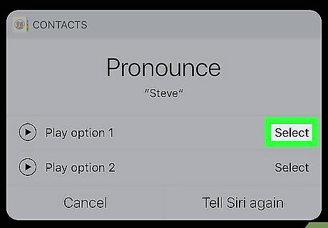 Tap Select next to the correct pronunciation. This is the pronunciation Siri will use for your first name from now on. Siri will say your full name back to you and use that pronunciation from now on.