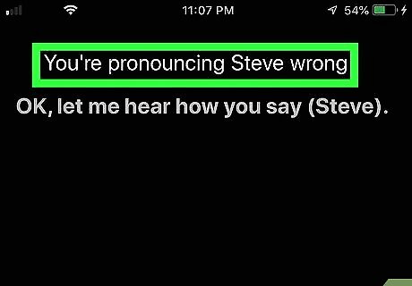 Say "You're pronouncing my name wrong." Siri will ask how to pronounce your name. Alternatively, you can say, "You're pronouncing [someone's name] wrong." On some devices, you may need to hold down the Home button to talk to Siri.