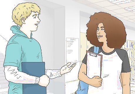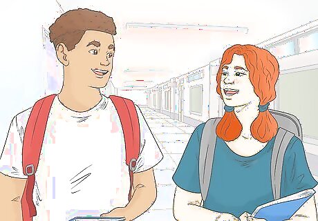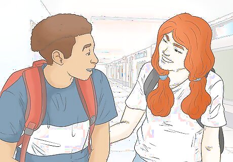 Choose a time when other people aren't around. This gives both of you wriggle room to back out and to say what you really feel without others overhearing and possibly spreading rumors. This might be at the end of lunch, after school or when you're alone at the lockers. Scout out possible good times and places a few days before you decide to tell him. Avoid the temptation to text, IM or email him with this news. It is definitely something that should be passed on personally, face-to-face.