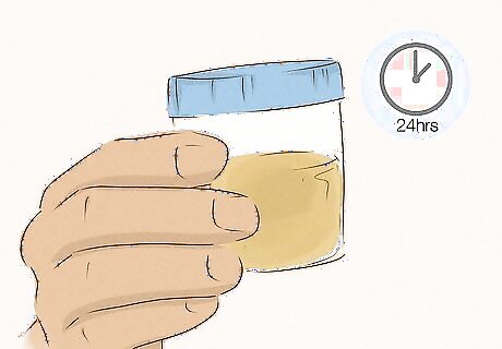 Urinate into the provided containers over the next 24 hours. Use the containers given to you by your doctor to save your urine every time you have to use the restroom. Keep doing this for 24 hours and make sure each sample is sealed with the label filled out.Tip: Depending on your healthcare provider, you may need to write down the day and time of collection as well as your name.