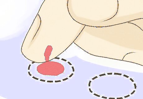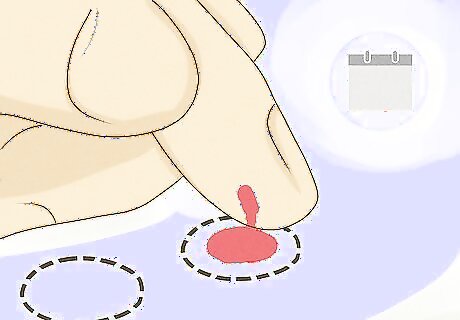 Add a drop of blood on each circle of the card. Continue gently squeezing down towards your finger to pull out more blood. Add a drop for every circle on the card. If your blood slows down, rub the area with sterile gauze to help get it flowing again. Prick another finger in the same spot with the second lancet if the first one stops bleeding.