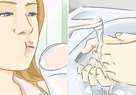 Rinse your mouth out and wash your hands before you take your sample. Swish warm water around your mouth to gently clean out any particles of food leftover. Wait for about 10 minutes after you rinse to take your sample. Then, wash your hands with soap and water and pat them dry with a clean towel.
