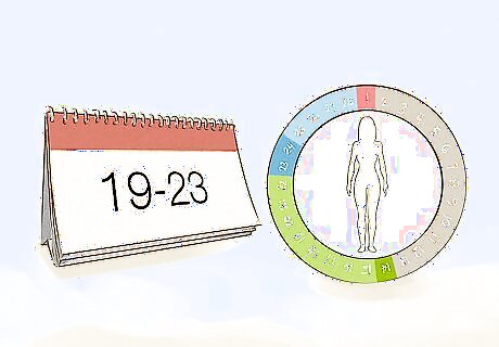 Collect your saliva on days 19 to 23 of your cycle if you get a period. Track your cycle and count the first day of your period as day 1. Try to use your saliva test kit between days 19 and 23 for the most accurate results. If you take hormone supplements, you can continue taking them like normal.