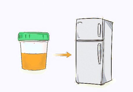 Store your urine in the fridge to keep it cool. Don’t let your urine sit out at room temperature. Instead, put it in your fridge or keep it in a separate cooler with ice in it so your urine stays fresh and doesn’t spoil. Keeping your samples cool will also reduce any smell they may give off.