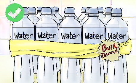 Buy in bulk. Buying in bulk is one of the easiest ways to lower the cost of your food. To buy in bulk, either visit stores like Costco or Sam's Club, or buy the largest pack of whatever product you want. In the end, you'll wind up saving per unit or per ounce. Don't buy something you don't need just because it seems like a good deal. After you figure out what you need, compare prices of like items. You may find that its not worth you getting a 30 pack versus just getting the 10 you actually need.
