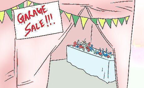 Buy decorations at a garage sale. If you're planning your Christmas party in advance, take time to visit garage sales in the weeks or months before. You'll likely find every sort of decoration you could want.