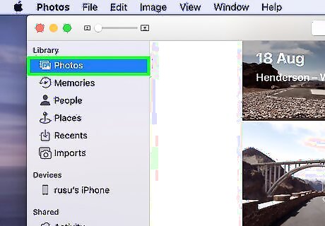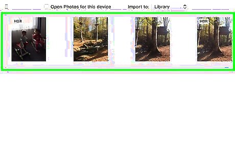 Click to select the media you want to be transferred. When Photos launches, it should open an "Import" page. If you aren't on the "Import" page, click the Import tab at the top of the app or click your iPhone's name in the left sidebar menu.