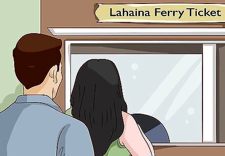 Buy your tickets in person if you're short on time. Purchase your tickets directly from the harbor if you'd prefer to pay in cash. If you haven't ironed out the specifics of your trip itinerary yet, then it might be easier to pay as you figure out the details. In this case, you can get your tickets directly from the dock at Lahaina, Maui, as well as at Manele Harbor in Lana'i. If you'd like to take a trip to Lana'i City, the shuttle costs $10 one way.