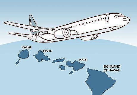 Fly between islands for the quickest travel option. Figure out which islands you'd like to visit before you book any flights. Out of Hawaii's 8 total islands, all but 2 are actively accessible to tourists. Once you've figured out the focus of your trip (e.g., sightseeing, going to the beach, hiking, etc.), booking your inter-island flights will be much easier. If you enjoy sweeping scenic views, visit Kaua'i, Hawai'i or Maui. For those looking for bustling city life, check out O'ahu. Although it's not the largest island, it is the most populated. To get a closer look at hula dancing culture, visit Moloka'i. If you'd like a smaller taste of the Hawaiian scenery and lifestyle, visit the privately owned island of Lana'i.