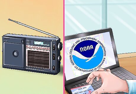 Tune into emergency alerts. The Emergency Alert System was created by the government to help people act in the case of a major emergency or environmental disaster like a hurricane. This requires satellite and cable providers to post alerts and evacuation instructions. Also, there is the Wireless Emergency Alerts that send the same notifications to your cell phone. Make sure to follow the emergency alert's instructions. Use wireless laptops, phones, and radios to update you during a hurricane. The NOAA Weather Radio All Hazards is a network of radio stations that report on severe weather around the U.S.