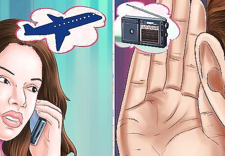 Pay attention to weather disasters in your destination. Keep an eye out for potential storms or weather disasters that threaten to hit the location you're staying at. Be prepared to switch to an earlier flight to avoid the hazards of being in the middle of a hurricane. Watch local news stations and listen to the local radio to hear updates about any oncoming storms. Call the customer service department at your airline and see if your flight can be moved for an earlier time.
