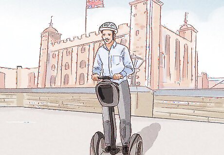 Register for a segway tour to travel in a unique way. Segways offer a scenic route of London, allowing you to travel through parks and other places at your own pace. Starting at £25, these tours are a bit pricier than other transit options, but they do allow you to get from point A to point B in comfort and style. Check online to find a Segway tour that you want to register for.