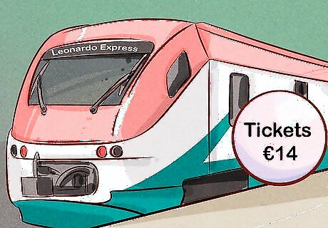Ride the Leonardo Express if you want a touristy travel experience. Most tourists choose this train route to get to Termini—it's the quickest and most comfortable option. While you are still at the airport, stop by the train station ticket office, most any newsstand or tobacco shop, or a self-service machine to get your train ticket. The Leonardo Express runs directly from Leonardo Da Vinci airport at Fiumicino to Termini, so it really makes for an easy trip. The ride takes about 30 minutes, and the train departs from the station every half-hour on all 7 days of the week. The ticket will cost you about €14 and children under 12 are free with a paying adult.