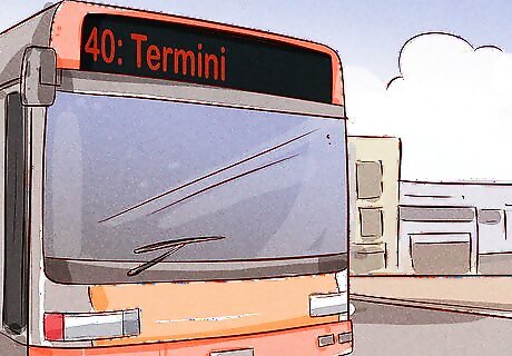 Ride the bus for the most convenient and affordable travel. The bus system in Rome is very complex, with multiple routes, frequent stops, and 24 hour service. The bus stops are large, so they are easy to spot. The signs will list the travel times and stops. Here are some popular routes that you may find convenient: 40: Termini - Piazza Venezia - Argentina - Piazza Pia (for St Peter's/Vatican) 64: Termini - Piazza Venezia - Argentina - Vatican 62: Repubblica - Spanish Steps - Piazza Venezia - Argentina - Vatican 81:Vatican Museums - Piazza Imperatore (Spanish Steps) - Piazza Colonna (Trevi Fountain) - Piazza Venezia - Circo Massimo - Colosseum 60: Termini - Piazza Venezia - Colosseum - Circo Massimo H:Termini - Piazza Venezia - Argentina - Trastevere Note that most routes run from 5:30am to midnight, with only the main routes running throughout the night.