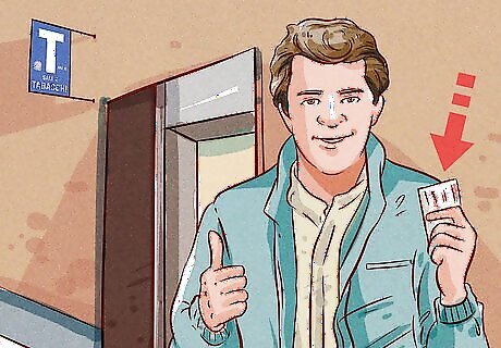 Purchase a transportation ticket at any tobacconist shop. The tobacconist shops are located throughout the city and can be identified by their signage. Look for the blue signs with a large, white capital letter “T.” The ticket isn't considered active until you validate it, so it's okay to purchase it in advance. The BIT is the standard ticket (€1.50) , and it is valid for one Metro ride or 100 minutes on all buses, including transfers. The BIG ticket (€7) is good for unlimited metro, bus, and train travel within Rome for 24 hours after you validate it. The BTI, or tourist, ticket (€18) is good for unlimited metro, bus, and train travel within Rome for 72 hours after you validate it. The CIS ticket (€24) is good for unlimited metro, bus, and train travel within Rome for 7 days after you validate it.