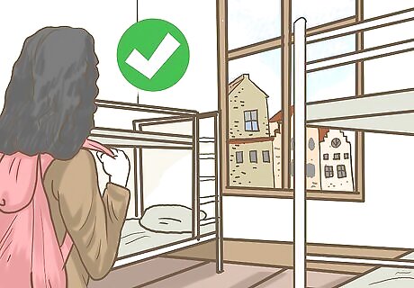 Look for hostels if you're comfortable sharing a room. Hostels are residences where you can share a room with other people. Many hostels run at a fraction of the price of hotels so they're more affordable for you to stay in. Plan on spending between about $20-$40 USD per night if you end up staying in a hostel. Depending on the hostel, a private room could be an option, but it may be more expensive than a shared space.Tip: Always check review sites, such as TripAdvisor, to see ratings and reviews of the hostels you're interested in. Make sure they are reputable and that others have had a good experience there as well.
