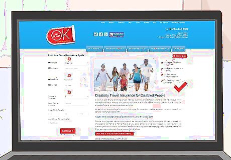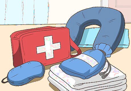 Take a comfort kit and extra medication. Make sure to have a kit of things to keep you comfortable. You should also have extra prescriptions for any emergency you may encounter during travel. This can prevent pain, unwanted visits to a doctor, or even immobility because of broken equipment. Bring gear to repair any devices you need such as a wheelchair or cane. Pack extra supplies of hot and cold therapy to relieve or prevent discomfort and stiffness. A comfy travel pillow may also ease discomfort during flights or train trips. Take extra medication with you. It could be difficult to get a prescription from a doctor who doesn't know you. This can also ensure you have medication if you lose any of your supply. Check if your insurance covers travel. If not, buy travel insurance that covers potential medical expenses while you're away.