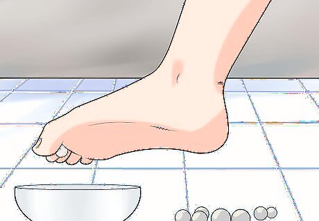 Perform the appropriate strengthening exercises. When done properly, strength exercises should help return the strength and endurance required for everyday activities to the injured foot. If you experience any pain during these exercises, consult your physical therapist or doctor. An example of a strength exercise is the marble pickup. Sit in a chair with both feet flat on the ground and put 20 marbles on the ground in front of you. Place a bowl near the marbles. Pick up the marbles one by one with your injured foot and place them into the bowl. You should feel the exercise on the top of your foot.