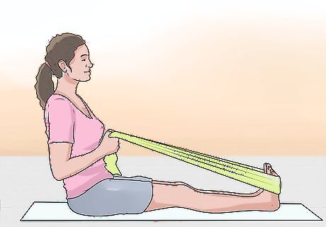 Stretch. Stretching exercises are a key step to restoring flexibility and range of motion. Following your doctor or therapist's recommended exercises, stretch the muscles and tendons in the injured foot. If you feel any pain during stretching, consult your doctor. A good example of a stretch is the towel stretch. Sitting on the floor with one leg straightened, loop a towel around the ball of your foot. Hold on to the ends of the towel and pull the top of your foot towards you. You should feel the stretch in your calf and down into the heel. Hold the stretch for 30 seconds, and then rest for 30 seconds. Repeat the exercise 3 times.