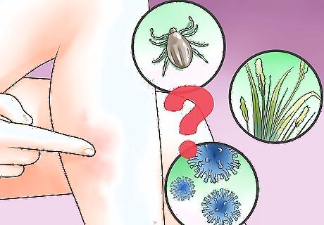 Inspect fungal infections in warm, dark areas of skin. Unlike bacterial infections, which take place in open, dry places on the body, fungi prefer warm, damp, dark areas of skin. Fungal skin infections are nearly as common as bacterial infections, and are more likely to cause symptoms of itching or sloughing skin. The most common forms of infection include: Athlete’s foot occurs exclusively on the feet. Athlete’s foot results in painfully itchy, cracked, and blistered skin on the feet. Ringworm, not caused by a worm, can occur anywhere on the body. Ringworm produces one or more small, round, itchy marks, often less than ⁄2 inch (1.3 cm) in diameter. Jock itch occurs in the groin and on the buttocks. As the name suggests, jock itch is itchy and can cause a ring-shaped rash, similar to ringworm.