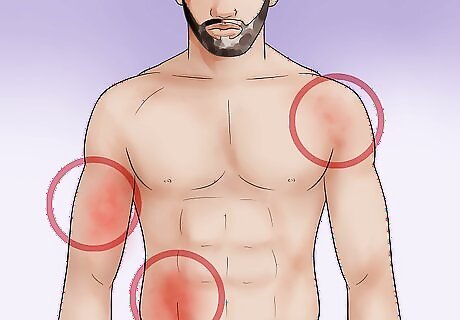 Look for red, swollen, painful areas of skin. Most forms of bacterial skin infection manifest as red, swollen, blotchy abrasions of one shape or another. Some are more likely to affect children, or likely to manifest on certain areas of the body. The most common forms of infection include: Cellulitis occurs most commonly on the legs or face. Cellulitis causes raised, painful, plaque-like rash. Impetigo occurs most commonly on the face. Impetigo most often afflicts children, and manifests as pus-filled bumps or pustules around the mouth or nose. Folliculitis occurs in and around hair follicles. Folliculitis can be a relatively minor series of small bumps, or worsen into large, painful pustules.