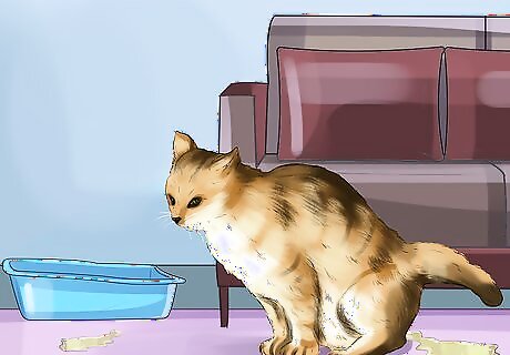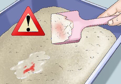 Check for blood stains in your cat's litter. Bacterial cystitis may result in blood in your cat's urine. When you clean your cat's litter box, watch out for any red stains that may be visible. If your cat urinates outside of its litter box, check the puddle for a red tint. Note that blood in your cat's urine may not always be visible, especially in its litter box.