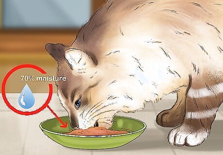 Switch your cat from dry food to wet food. As a general rule, wet foods and food with a high water content can benefit a cat's urinary health and help prevent infections. Wet foods are about 70% moisture, which can help dilute your cat's urine and lower the risk of infection-causing crystals. Ask your vet to recommend a wet food brand that is healthy and low in preservatives. Dry cat foods are often high in minerals, which can lead to urinary infections and bladder issues. Introduce new foods to your cat gradually to avoid digestive issues.