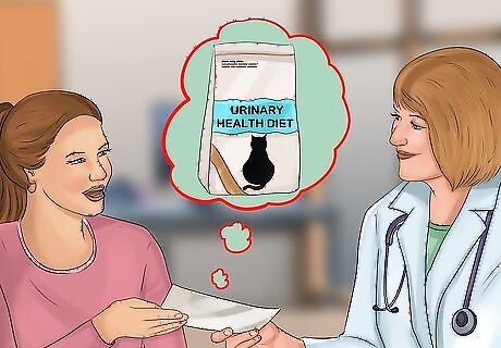 Talk to your vet about putting your cat on a special urinary health diet. There are several prescription diets available which optimize urinary health. These foods contain synthetic substances that artificially control the pH of your cat's urine.Ask your veterinarian if a urinary health diet is right for your cat.