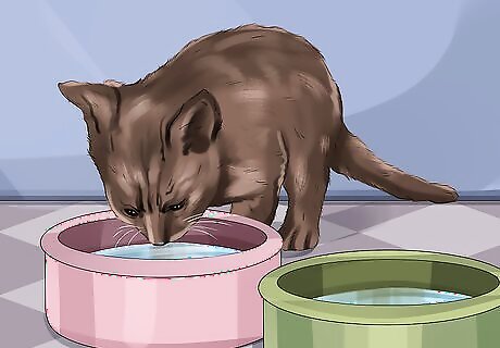 Increase your cat's water intake. Encouraging your cat to drink more water helps to dilute urine, which may prevent future incidences of cystitis. Increased water consumption will also help to reduce soreness and inflammation. Entice your cat to drink water by putting out extra water bowls for it to drink from or flavoring its water with a small amount of salt-free broth. Simple things like changing the cat's diet from dry to wet food can help to increase water intake. Some cats prefer to drink running water, which can be easily provided with a pet drinking fountain.