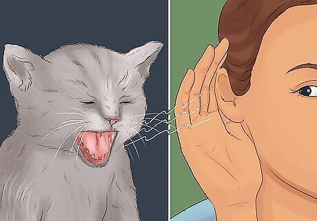 Listen for sounds of distress when your cat is trying to urinate. One of the symptoms of bacterial Cystitis in cats is discomfort when passing urine. Listen for signs of discomfort when your cat is using its litter box, such as crying or growling. Hissing or yelping may also mean that your cat is in pain.