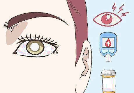 Regulate your general health. There are certain conditions such as diabetes that can increase your risk of developing cataracts. By maintaining your health and managing any health problems, you may be able to prevent cataracts. Eye conditions or trauma and past eye surgery may increase your risk of developing cataracts. Diabetes can make it more likely that you get cataracts. Long term use of steroids, antipsychotic medications, and statin drugs may increase your risk for cataracts.