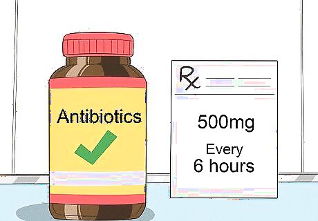 Take antibiotics. This is the most common treatment for cellulitis, and is usually done in a hospital setting. Treatment depends on the severity of the infection and your health, but it usually includes a prescription for oral antibiotics that will kill the infection. Cellulitis should begin to retreat within a few days, and disappear altogether within seven to ten days. Your doctor may advise you to take 500mg of cephalexin by mouth every six hours. If MRSA is suspected, then your doctor may prescribe trimethoprim/sulfamethoxazole (Bactrim), clindamycin, doxycycline, or minocycline. Bactrim is most often prescribed for MRSA. Your physician will ask you to follow up within two to three days to report on the progress of the cellulitis. If it seems to be retreating, you'll need to take the full course of antibiotics (usually for 14 days) to ensure the infection is completely gone. Do not stop taking the antibiotics or skip doses because this can make it harder to treat the infection. Your physician will prescribe oral antibiotics if you are healthy and your infection is limited to the skin, but if the infection seems to be deeper and you're experiencing other symptoms, oral antibiotics won't be fast-acting enough.