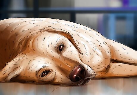 Encourage rest. You do not want a sick pet to overexert itself. Try to get your dog or cat to rest as symptoms persist. Avoid excessive exercise, like walking or running, while your pet is sick. If your pet tends to like lying on the couch with you, try to spend a night on the couch. This may encourage your pet to lie down and rest instead of running and playing. You may want to put down a cover, however, in case of an accident.
