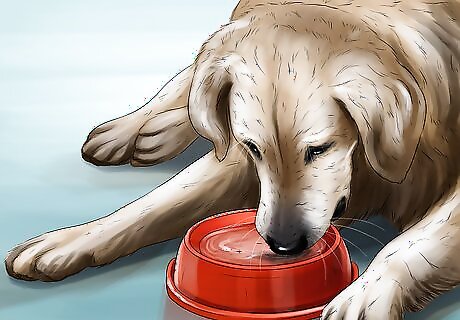 Provide your pet with water. Diarrhea can cause dehydration, so make sure water is present for the duration of your pet's illness. Make sure your pet has access to a bowl of water at all times. Some pets may not want to drink water if they're not feeling well. Try adding a bit of chicken broth to the water to entice them to drink it.