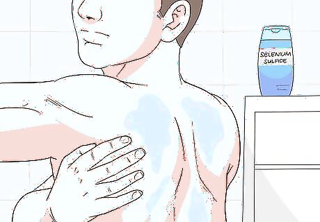 Try a shampoo with selenium sulfide as a body wash. Dandruff shampoos with selenium sulfide, such as Selsun Blue, can help clear up fungal acne. Instead of using the shampoo as you would a normal body wash, smear a thin layer of the shampoo over the affected area and leave it there for 5 to 10 minutes, then wash it off. Do this once a day until your skin is clear, then continue to do it once or twice a week to keep the fungal acne from returning. Other dandruff shampoos, such as Head and Shoulders, with the active ingredient pyrithione zinc, might also work when used in the same way.