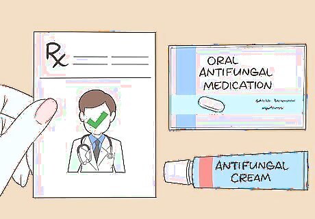 Take prescribed antifungal medication as instructed. Most fungal acne clears up with over-the-counter topical treatment. However, if yours is resistant, your dermatologist might prescribe an oral antifungal medication. These medications destroy the fungus that a topical cream might not be able to reach. Always take the full round of medication, even if your skin starts to clear up before you've finished it. Completing the full round makes it less likely that the fungus will return. Make sure you understand the possible side effects of oral antifungal medication before you start. If you have troubling side effects, including nausea, vomiting, diarrhea, or abdominal pain, let your dermatologist know. They might discontinue treatment.