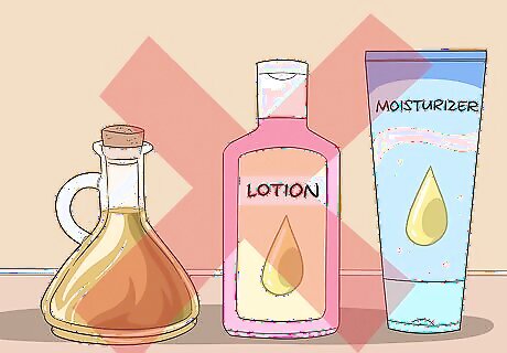 Keep oils and oil-based products off your skin. While you certainly don't want to get sunburned, make sure any sunscreen you put on your back isn't oil-based. The oil will clog your pores and make it more difficult for you to eliminate the fungal acne. Check the ingredients on any lotions or moisturizers you use regularly to make sure they don't include oils. If you feel the need to moisturize your skin, stick to natural, water-based moisturizers while you're treating the fungal acne.
