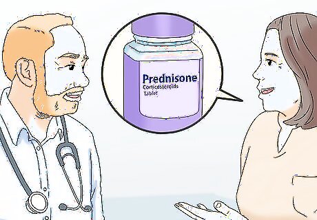 Discuss corticosteroids with your doctor if nothing else helps. Corticosteroids, such as prednisone, can relieve the pain and inflammation in your joint. However, they can also cause serious side effects, so your doctor likely won’t prescribe them unless NSAIDs and colchicine don’t work for you. If you do use corticosteroids, you can take them in pill form or as an injection. Potential side effects of corticosteroids include high blood pressure, high blood sugar, and mood changes.