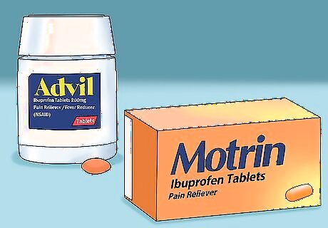 Take over-the-counter NSAIDs to relieve pain and swelling. If your doctor approves them, NSAIDs can provide quick relief during a gout flare-up for 2-5 days. Once your gout attack is under control, reduce your dosage by half. You can purchase NSAIDs like ibuprofen (Advil, Motrin) or naproxen (Aleve) without a prescription. Read the label on the bottle, and take the medicine as directed. Check with your doctor to make sure NSAIDs are right for you. They may cause side effects like stomach pain, bleeding, and ulcers in some people.Tip: If over-the-counter NSAIDs don’t work for you, your doctor may prescribe indomethacin (Indocin) or celecoxib (Celebrex) to provide you more relief.