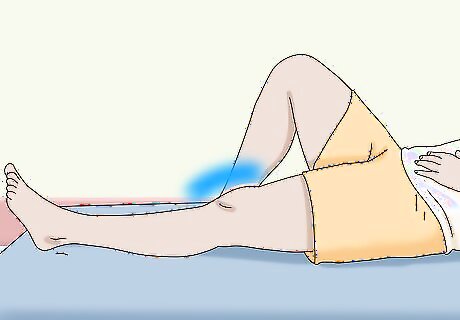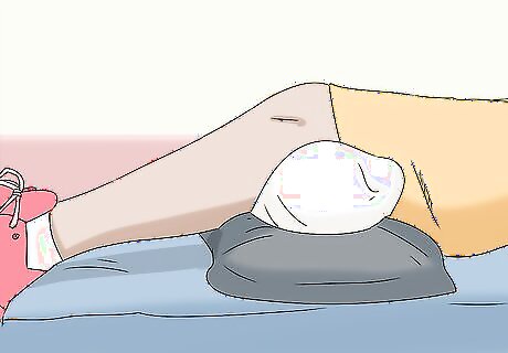 Elevate your knee to reduce swelling. Position your leg on a stack of pillows or on the armrest of your couch. The elevation will help relieve the swelling in your joint, which can also reduce your pain. It’s a good idea to ice your knee while it’s elevated. However, remember that you only need to apply the ice for 20 minutes at a time.